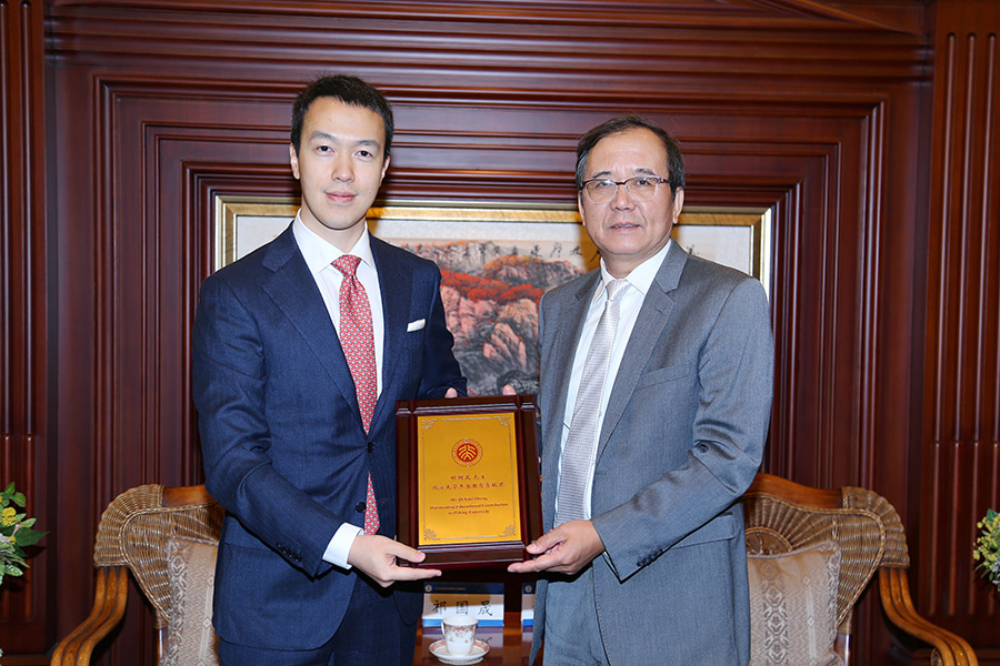 林校长向祁国晟董事长颁发“北京大学杰出教育贡献奖”