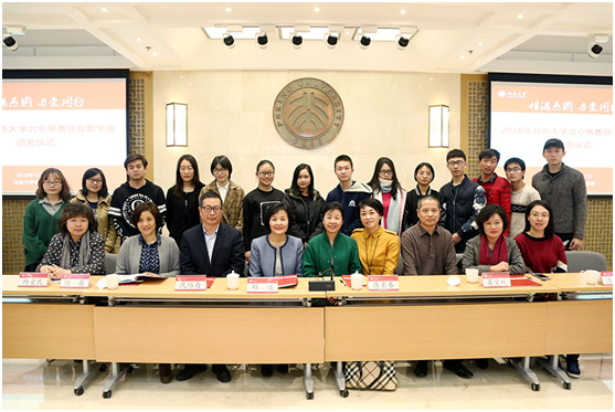 12月17日,2016年度北京大学北仑慈善总会助学金颁发仪式在教育基金会北大之友报告厅举行。北仑慈善总会会长蒋素春,上海浦东发展银行北仑分行工会主席沈际存,北京大学校长助理、教育基金会秘书长邓娅,副教务长吴宝科,学生资助中心主任杨爱民等共同出席仪式。仪式由教育基金会副秘书长赵文莉主持。