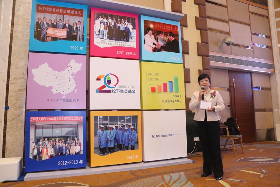 纪念仪式上,王秀云向给予松下育英基金大力支持的所有人士表示衷心感谢。贾伶则在现场通过几副珍贵的照片,带领大家回顾松下育英基金20年的发展历程。