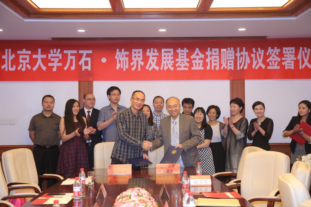 金秋燕园,启航梦想更收获回馈。9月20日,北大1986级校友伉俪、万石画艺有限公司创始人杨瑞祥先生、方晓蕊女士与北京大学常务副校长、北京大学教育基金会副理事长吴志攀教授签署捐赠协议,设立万石•饰界发展基金,支持北京大学人才培养事业的发展,助力北大学子全面成才。捐赠仪式在临湖轩举行。