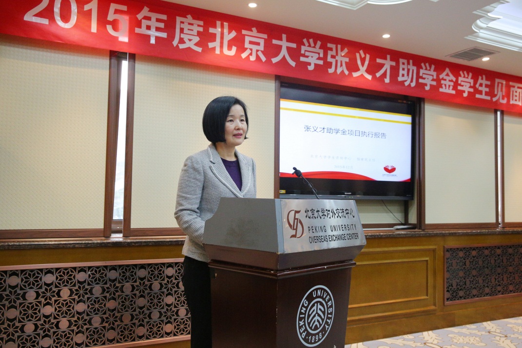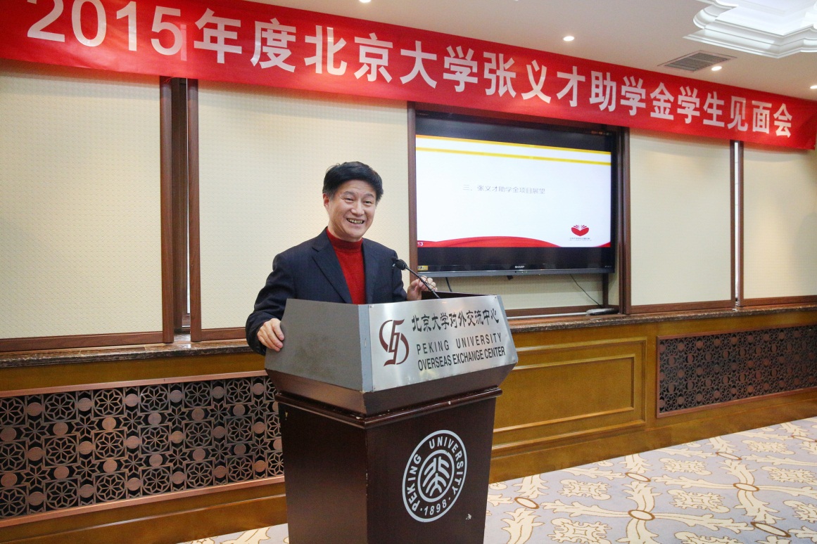 12月13日,2015年度张义才助学金学生见面会在英杰交流中心举行。上海随心投资有限公司董事长张义才先生,总经理章树江先生,副总经理王懿男先生,北京大学校长助理、教育基金会秘书长邓娅,学生资助中心主任杨爱民等出席。见面会由北京大学教育基金会副秘书长赵文莉主持。