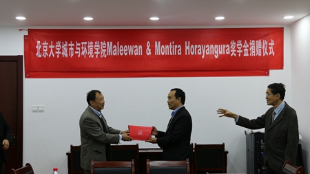10月21日上午,“郑木芸与何淑敏(Maleewan and Montira Horayangura)奖学金”签约仪式在北京大学城市与环境学院举行。签约仪式由北京大学城市与环境学院世界遗产研究中心教授阙维民主持。泰国华侨、捐赠人何宗机(Bhanuphol Horayangura)与其女婿Professor Apinetr (Pong) Unakul,北京大学教育基金会副秘书长耿姝,城市与环境学院部分领导及遗产研究专业学生等出席仪式。