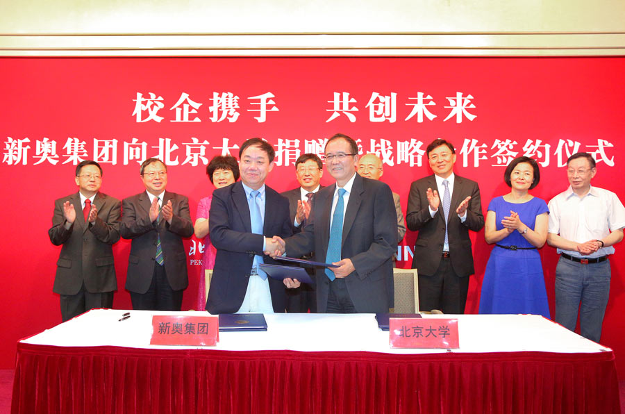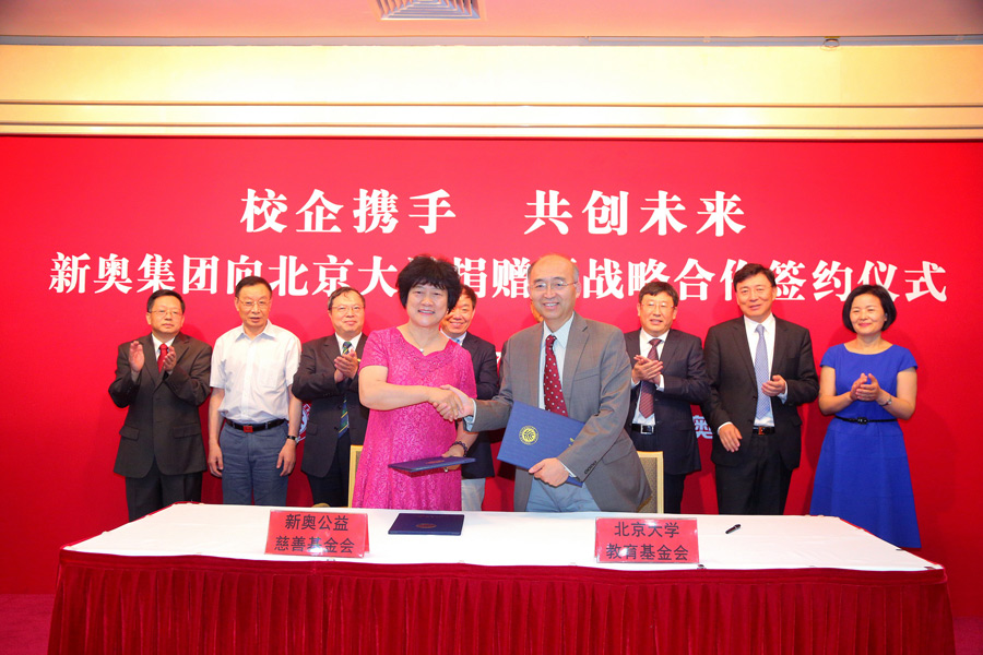 新奥公益慈善基金会韩瑞改理事长与吴志攀常务副校长共同签署捐赠协议