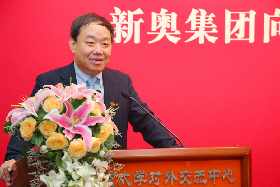 随后,新奥集团董事局王玉锁主席致辞。他感谢北大对新奥集团的信任,给予新奥集团回报社会、支持教育的机会。王玉锁先生表示,北大重建工学院,是支持产业转型、建立创新型国家的举措,这是时代赋予北大的责任,也是北大对时代的一个交代。因此,新奥集团对能有机会支持北大工学院的发展,支持北大担当起国家在这个时期的责任感到非常荣幸。