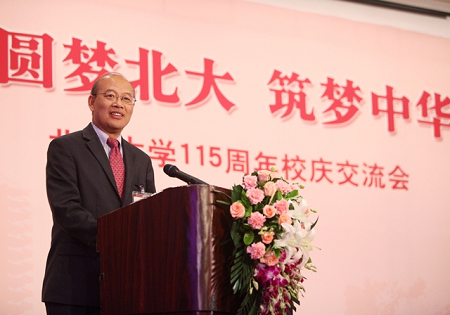 5月22日下午,北京大学115周年校庆交流会隆重举行,北京大学党委书记朱善璐教授,校长王恩哥院士,常务副书记、副校长张彦教授,常务副校长柯杨教授,校长助理邓娅、马化祥等学校领导及各院系负责人,与来自全国各地的各界友人共200余人齐聚一堂,畅叙情谊。