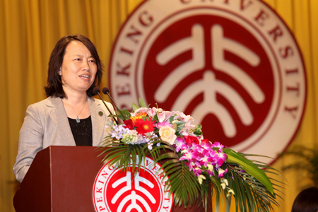 段丽萍宣读评审报告段丽萍代表北京大学奖学金评审委员会介绍了本年度光华奖学金的评审情况。评审工作按照光华教育基金会与北京大学签订的奖学金协议以及《北京大学学生奖学金评审条例》的要求,遵循公开公平公正原则进行。各院系组织学生进行个人总结、民主评议以及综合素质测评,由院系奖学金评审小组确定初步人选并在本院系范围内进行公示,征求意见。经校奖学金评审委员会复审,共评出获奖学生678名,其中校本部558人、医学部120人;获奖学生中,少数民族学生有50人,占获奖总人数的7.4%。