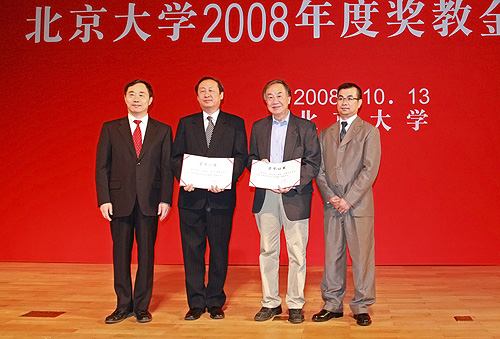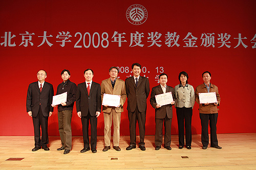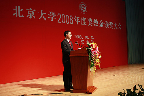 10月13日下午,北京大学2008年度奖教金颁奖大会在百周年纪念讲堂隆重举行。北京大学党委书记闵维方、北京大学党委常务副书记吴志攀、北京大学常务副校长柯杨等领导出席,并与来自碧桂园集团、中国工商银行、正大集团、宝洁集团、北京银行、北大方正、北大青鸟的捐赠方代表,共同为获奖教师颁奖。