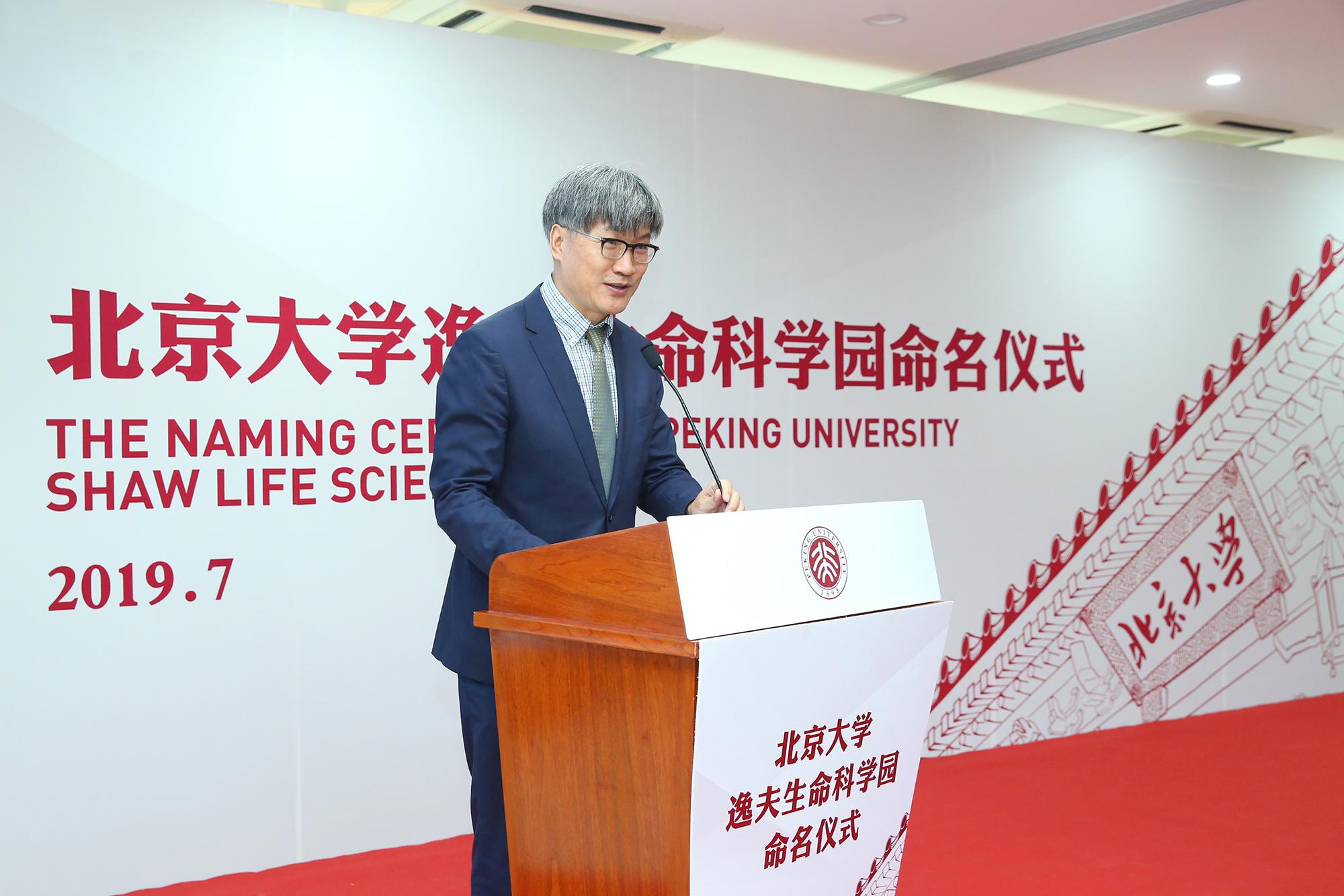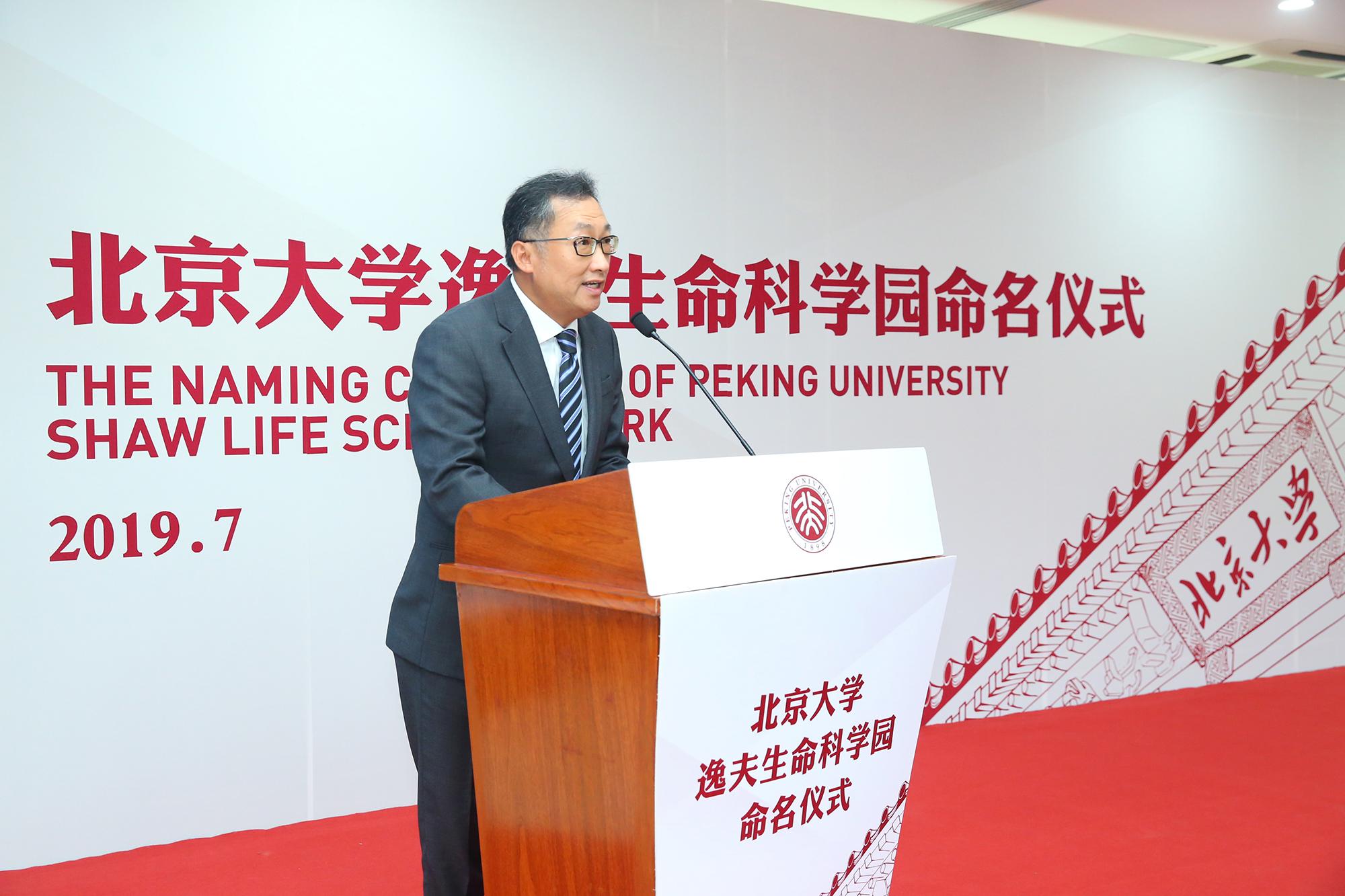 王博代表学校感谢邵氏基金会对北大的信任与厚爱、对生命科学的持续支持,也感谢教育部多年来给予北大的认可与支持。王博指出,作为新的学术园地,逸夫生命科学园是北大规模最大、最前沿的生命科学教学研究基地,未来将创造出最优秀的科研成果。王博提到,邵逸夫先生曾说过,人类的伟大在于追求、研究、传授学问、造福人类。他表示,这也是北大的学术理想与使命,北大将建设好包括生命科学在内的各类学科,继续关心人类所面临的重大问题,为实现中华民族伟大复兴努力前行、贡献力量。