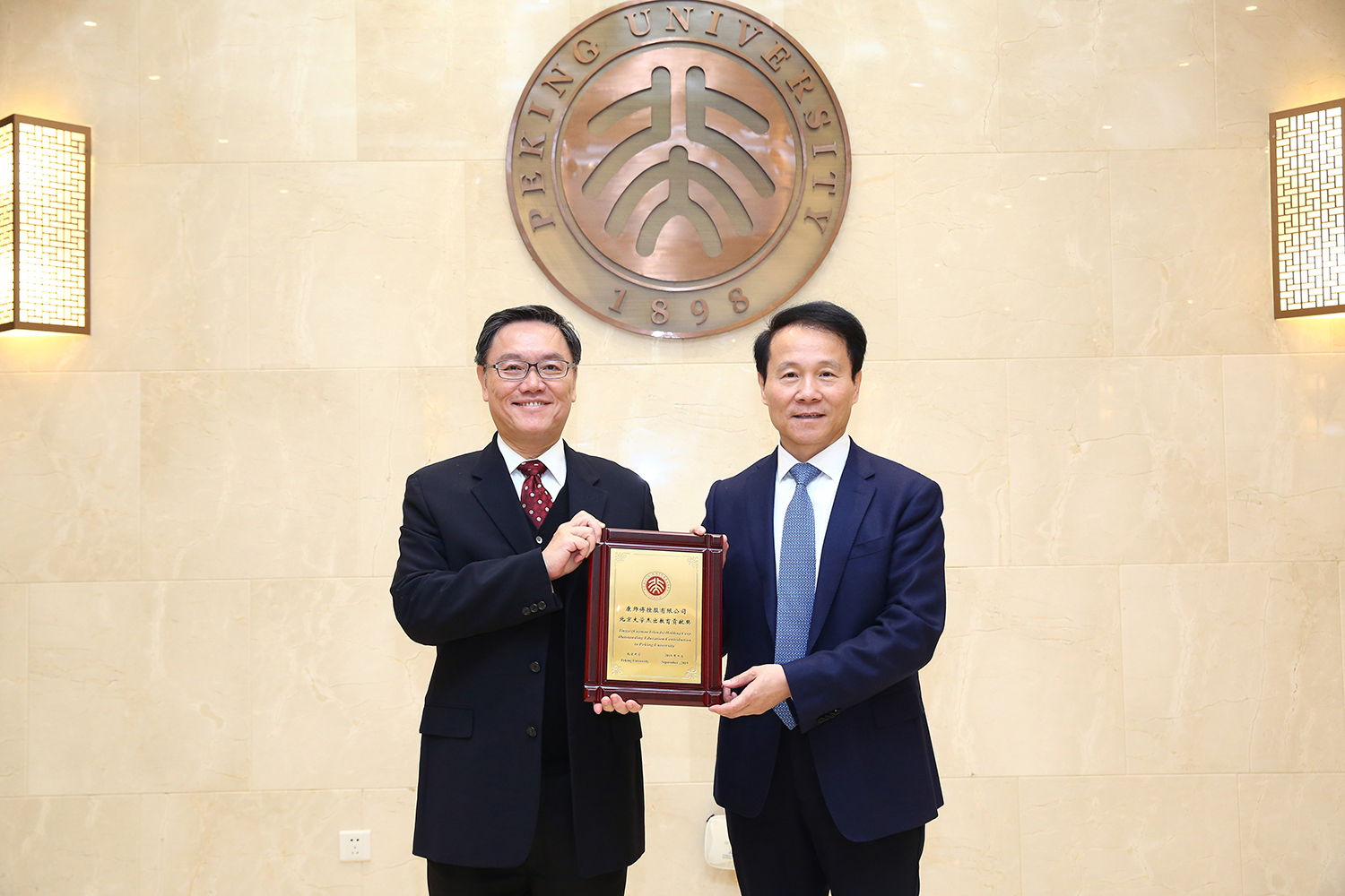詹启敏代表学校授予康师傅控股有限公司北京大学杰出教育贡献奖