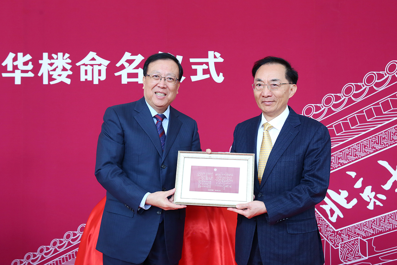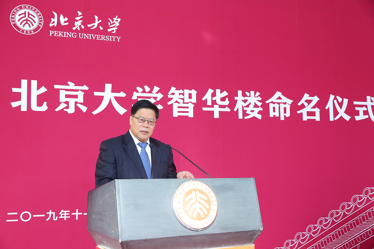 11月20日上午,由香港恒基集团副主席、智华基金会主席、北京大学名誉校董林高演捐资支持改造的北京大学“智华楼”命名仪式在百周年纪念讲堂举行。林高演先生及家人林福祥,北大之友(香港)创会会董、北京大学名誉校董陈国钜及夫人陈伍玉华,北大之友(香港)创会会董、北京大学名誉校董陈上智,北大之友(香港)创会会董伍嘉伟、会董崔劲中一行专程从香港来到北大,与北京大学党委书记、教育基金会理事长邱水平,校长郝平,数学科学学院副院长、长江特聘教授史宇光,数学科学学院党委副书记、副院长孙赵君,房产管理部部长殷雪松,基建工程部部长白利明,教育基金会秘书长李宇宁,党办校办副主任付帅,教育基金会副秘书长耿姝等师生代表共同出席。副校长、教育基金会副理事长王博主持仪式。