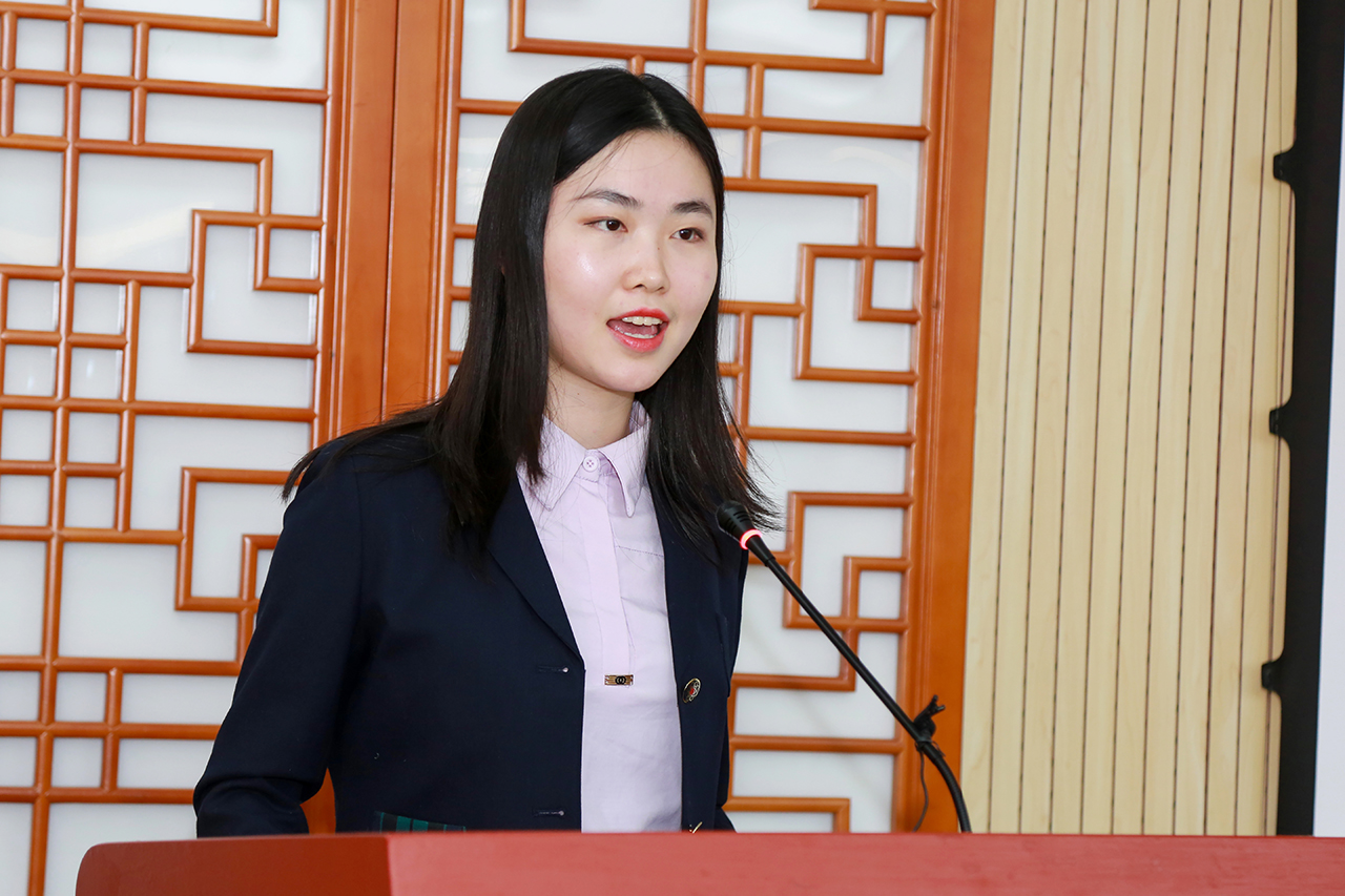廖凯原奖学金获奖学生、法学院2016级本科生杨润润谈到自己在北大学习、生活和参加志愿活动的经历和感受。她认为,廖凯原校董对教育的热爱、对青年一代的支持和强烈的社会责任感,是对所有获奖学生的启发和引领。她相信北大学子未来将在不同领域为国家的未来努力奋斗,做出应有的成绩。她表示,廖凯原校董的支持照亮了北大学子的大学生活,他们也希望通过自己的行动照亮中国的未来。