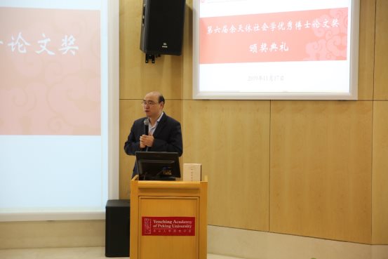 胡俊代表北京大学余天休社会学基金和基金的捐赠者胡余锦明女士致辞。他向所有获奖者表示祝贺,并追溯了胡余锦明女士设立余天休社会学基金的初衷和历程。胡俊表示,明年将是余天休先生执教北大的百周年纪念,余天休奖的发展和对中国社会学的贡献将是对其纪念的重要部分。