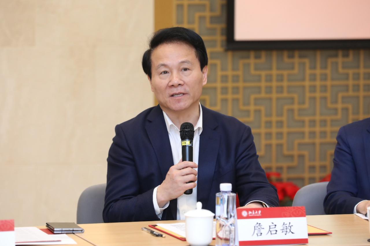 詹启敏代表北京大学致辞。他表示,北大医学人在战“疫”中的表现见证着医者仁心,彰显着英雄本色。企业界校友的无私支持,是校友与母校共同弘扬大爱无疆、热心公益、见义勇为情怀的善举。詹启敏指出,在北大凝心聚力开新局的紧要关头,校友的支持是学校不断前进的宝贵动力和坚强后盾,期待与校友们携手并肩,共同建设好北大,凭借思想、学术和人才,为国家和民族、为世界和未来做出更大贡献。