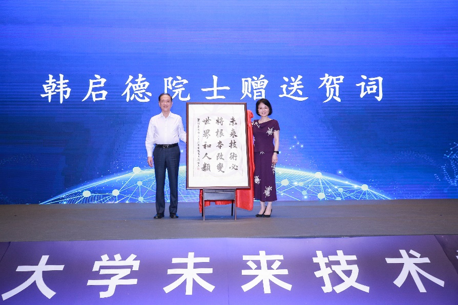 韩启德向未来技术学院赠送贺词——“未来技术必将根本改变世界和人类”,他希望学院不断加深对“未来技术”的理解,更好地整合校内力量,促进学科交叉融合,为推动国家生命健康产业发展作出更大的贡献。