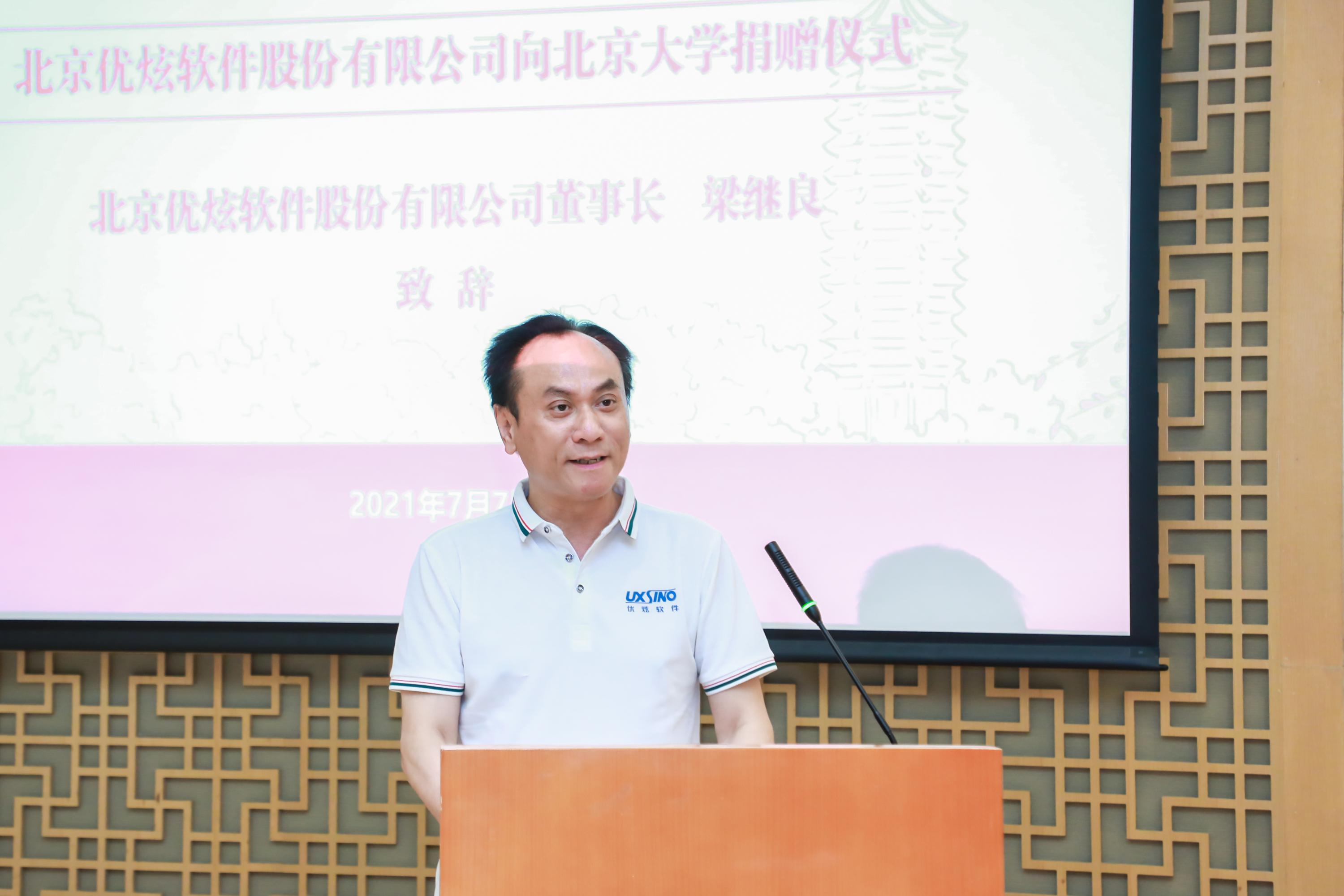 梁继良讲述了自己的家族与北大之缘和创业的逐梦之旅。他表示,北大对自己影响深远,是自己创业时的支撑力量,虽然毕业20多年他仍然怀念母校,出走半生仍保留少年时的赤子之心。他指出,优炫软件希望解决数据库“卡脖子”工程,坚持科技创新,立志让中国人用上自己的数据库。此次捐赠,优炫软件开启了与北大的新篇章,希望今后能为母校做出更多贡献,持续为北大的教育事业发展提供新动能。