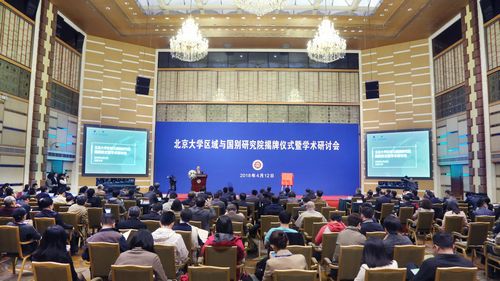 2018年4月12日,北京大学区域与国别研究院揭牌仪式暨学术研讨会在北京大学英杰交流中心阳光大厅举行。全国政协副主席、民进中央常务副主席刘新成,教育部国际司副司级参赞陶洪建,国务院发展与改革委员会副秘书长施子海,留学基金委副秘书长张宁,国务院发展研究中心对外经济研究部第一研究室主任胡江云,北京外国语大学校长彭龙,中国人民大学副校长贺耀敏,首都师范大学副校长李小娟,东北师范大学副校长韩冬育,郑州大学副校长张倩红,以及来自校内外的近200位学者代表出席了会议。北京大学校长林建华在仪式上致辞,北京大学副校长王博担任主持。