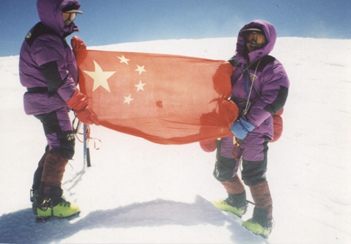 北京大学珠峰登山队部分队员在珠峰顶合影