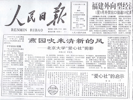 一张简简单单的海报,一份润物无声的爱心,一种悄然兴起的新风尚。爱心社就这样诞生了,如一夜春风,吹暖了未名湖畔无数充满激情与理想的心灵。志愿精神在校园落地生根,爱的力量从此间凝聚迸发。25年来,一批又一批的北大学子用他们的爱心温暖着他人,一批又一批的爱心社员用他们的执著感动着社会。