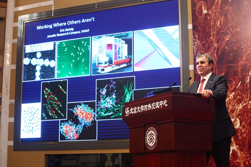 埃里克·白茨格教授入选“与大师对话——诺贝尔奖获得者大师校园行”项目,并于 2016年3月14日应北京大学“大学堂”顶尖学者讲学计划的邀请,访问了北京大学。他围绕超高分辨显微镜等国际热门话题在英杰交流中心阳光厅发表了学术演讲,与来自北京大学、中科院等科研院所的师生在现场进行了学术交流。