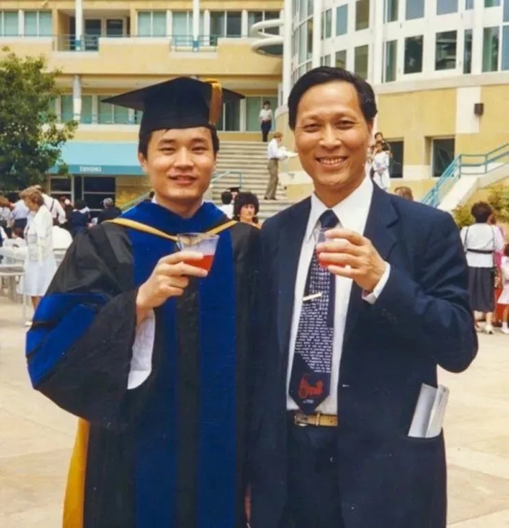 1990年与父亲在加州大学圣地亚哥分校博士毕业典礼