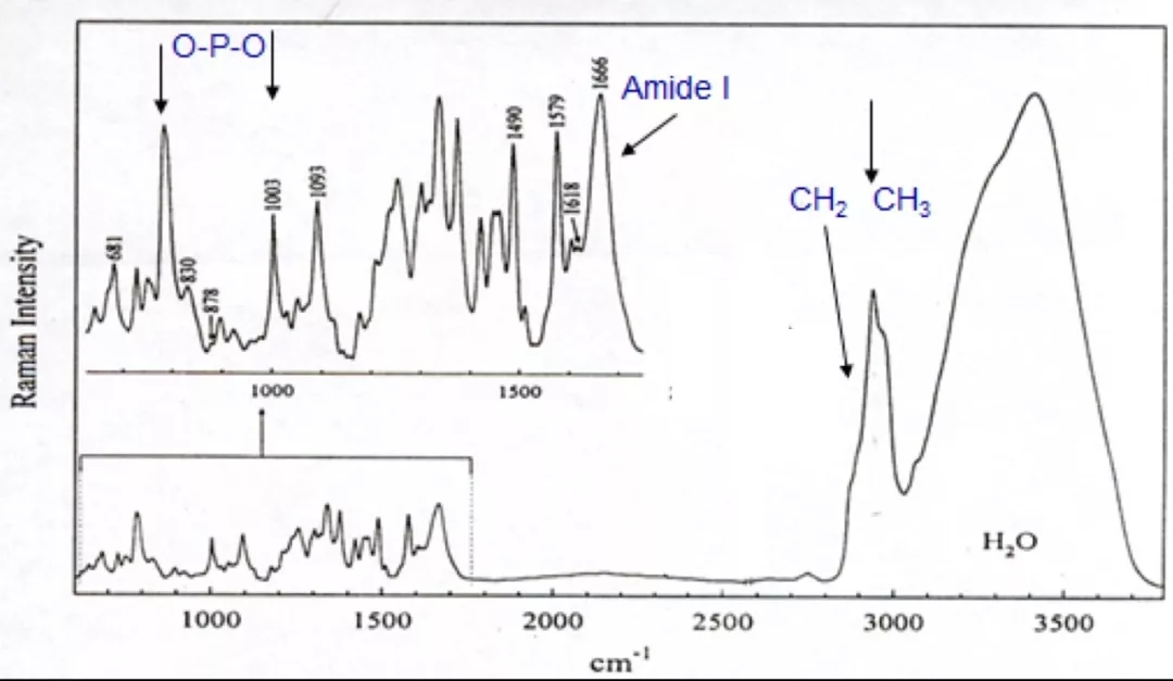 细胞的拉曼光谱显示其中不同分子(水,脂肪,蛋白质,DNA)各自特征的化学键振动频率。但传统拉曼光谱弱信号,需要长时间收集(>0.1秒每个点,600x600 点成像需要 >10小时)。谢晓亮的发明最终实现了拉曼视频成像。