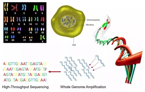 单细胞DNA扩增后测序,可以得到人的46条染色体的DNA序列
