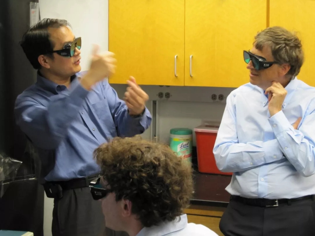 两篇文章发表后一周,盖茨基金会打电话邀请我申请资金,希望用我们的新技术来研究一小部分肺结核的细菌细胞产生抗药性的原因——那时肺结核每年可夺去数以百万计的非洲儿童的生命。来年比尔·盖茨(Bill Gates) 作为“最成功的辍学者”被授予哈佛的荣誉博士学位,他在毕业典礼上的致辞非常感人。后来他来我实验室交流,我感到他对相关分子生物学的理解颇深——想必与我一样也自学补过课,而令我没想到的是他竟然也熟悉我们实验时用的超快激光。虽然我们至今还没有解决那个抗药性的科学问题,但这个盖茨基金会的项目却为我带来了新的思考:能不能用我们基础研究的成果来造福社会?