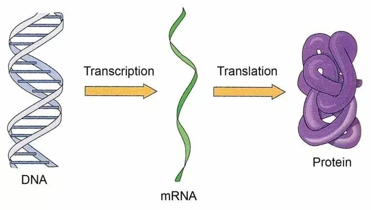 DNA以单分子的形式存在于细胞中,基因表达按照分子生物学中心法则进行