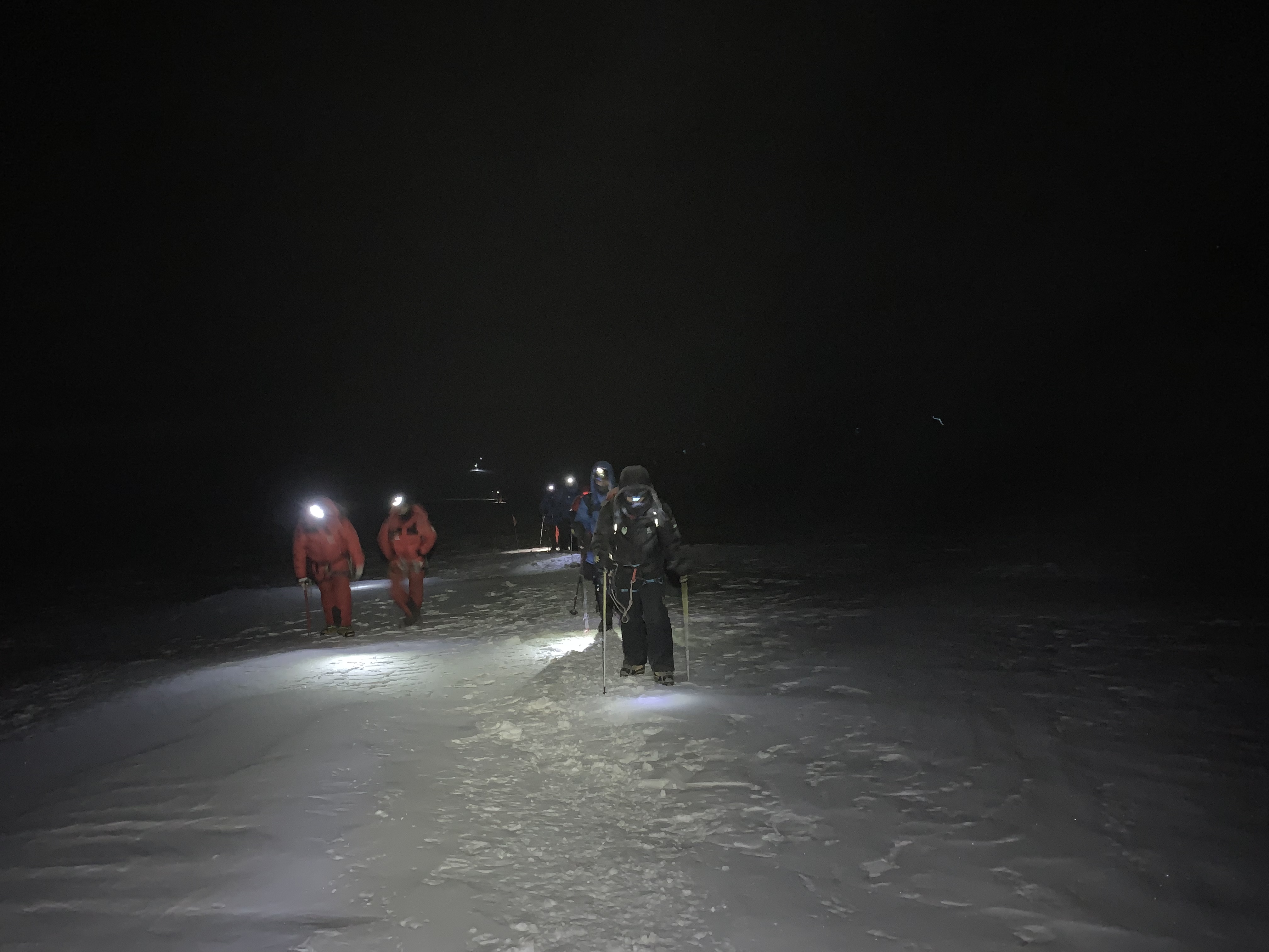 队员们早在半年前就开始了艰苦的体能训练,为本次攀登活动做积极准备,4月26日队员们陆续从北京出发,并于4月28日在格尔木完成集结,前往西大滩基地。在海拔5050米的攀登大本营完成高海拔适应后,全体冲顶队员于5月2日晚顶着风速60公里/小时的大风抵达海拔5600米的C1营地,等待冲顶时机,并于次日凌晨4时15分开始踏上征程完成了登顶壮举。