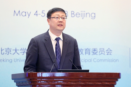 2018年5月4日下午,由中华人民共和国教育部指导,北京大学、北京市教育委员会和韩国高等教育财团主办的“双一流”建设国际研讨会暨北京论坛(2018)于钓鱼台国宾馆隆重开幕。本次研讨会以北京大学120周年校庆为契机,来自44个国家和地区的261所高校代表出席,包括剑桥大学、牛津大学、莫斯科国立大学、柏林自由大学、哈佛大学、耶鲁大学、斯坦福大学、芝加哥大学、澳大利亚国立大学、新加坡国立大学、东京大学、北京大学、清华大学、复旦大学、上海交通大学等多所海内外知名大学校长及世界知名学者,近800人齐聚一堂,以“变与不变——120年来全球大学与世界文明”为题,携手共议当代高等教育改革与世界文明发展的未来趋向。中国国务院副总理孙春兰,教育部部长陈宝生,北京市市长陈吉宁,北京大学党委书记郝平、校长林建华等出席开幕式。开幕式由林建华主持。