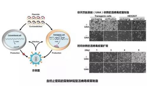 北京大学药学院周德敏研究团队以流感病毒为模型,在保留病毒完整结构和感染力的情况下,仅突变病毒基因的一个三联遗传密码为终止密码,流感病毒就由致病性传染源变为预防性疫苗;再突变多个三联码为终止密码,使病毒变为治疗性药物。