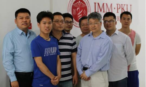 项目主要完成人合影,上图左起徐欢、司龙龙、周德敏、张礼和。司龙龙和徐欢是北大药学院博士研究生,为论文共同第一作者。