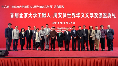 2018年4月25日上午,首届“北京大学王默人-周安仪世界华文文学奖”颁奖典礼在北京大学英杰交流中心阳光厅举行。本届评奖通过两轮评选,最终确定贾平凹《极花》和黄锦树《雨》获得评委会大奖,臧棣《必要的天使》、李修文《山河袈裟》、东西《篡改的命》获得提名奖。