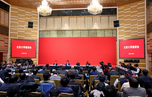 2018年1月10日下午,国务院副总理刘延东来到北京大学,考察指导学校工作,向广大师生员工致以新年的祝福,并在英杰交流中心和北大师生座谈。