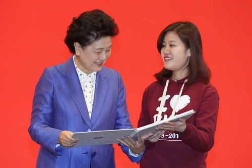 学生代表李晓丹向刘延东赠送纪念相册