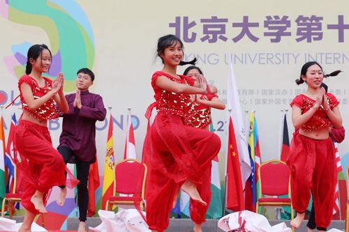 10月21日,北京大学第十五届国际文化节在百周年纪念讲堂广场开幕。这次活动是学校一百二十周年校庆系列活动之一,主题为“北大因你、百廿又新”,来自60多个国家和地区的数千名学生参加了本届国际文化节。教育部留学服务中心、孔子学院总部/国家汉办、中国教育国际交流协会、北京市教委、中央美术学院等机构、院校的领导和代表,尼泊尔、巴勒斯坦、阿富汗、伊朗、保加利亚、几内亚比绍、突尼斯等10多个国家的外国使节,以及北京大学校长林建华、校友代表和师生代表出席了开幕式。