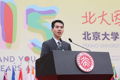 来自元培学院的2015级本科生倪彦俊,通过自己参加各种国际交流活动的经历,解释了他对“百廿又新”的理解。他认为,成长和日新,一方面在于参与,另一方面在于从不同的价值观和思维方式的碰撞中得到教益和成长。倪彦俊说道,青年学生应该在国际交流中更清楚地认识同辈,理解整个世界,明确自己的目标,与世界紧紧联系在一起,北大也将因此焕发光彩。