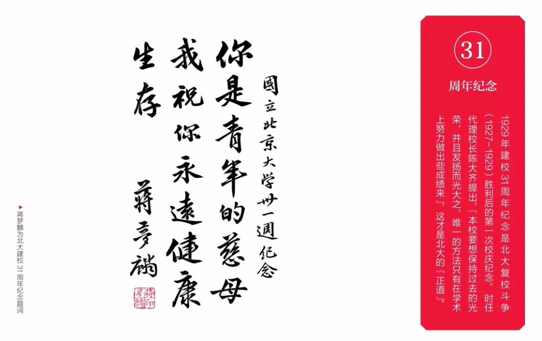 编者按:从首次开展校庆纪念活动的1917年,到战乱中匆忙度过的50周年,再到在人民大会堂举办纪念大会的百周年校庆……你是否曾好奇,在北大百廿年的风雨历程中,历年校庆都留下过什么样的故事?在百廿年校庆日即将到来之际,我们不妨跟随北大校史系列台历一起,回顾一下历史上值得纪念的部分校庆吧。