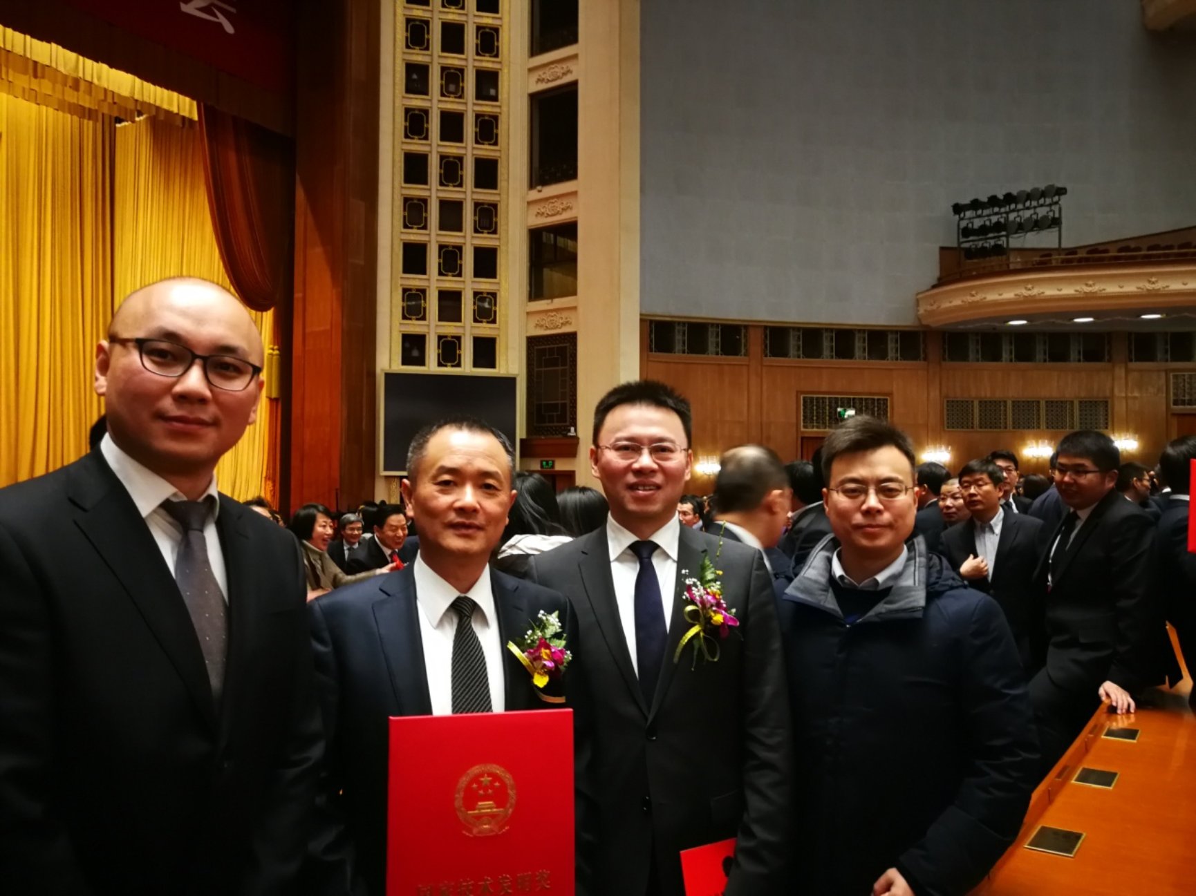 北京大学梅宏团队的“云-端融合系统的资源反射机制及高效互操作技术”获得2018年国家技术发明一等奖,图为团队成员在颁奖仪式后合影
