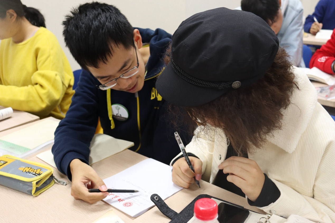在张峻梓、郭心舟等数院青协历届秘书长的努力下,“一对一”结对子的形式也逐渐被推广开来。来自数院的志愿者和需要答疑的同学们一帮一,有时候一讲就是一上午,一站就是一整天。“数院同学有一种‘好为人师’的风气,我们并不端架子,而是‘以数学会友’。在帮助同学解答问题的同时,自身也能够查漏补缺,互相促进。虽然辅导会占据自己复习的时间,但同时也能督促我们提高学习效率。”