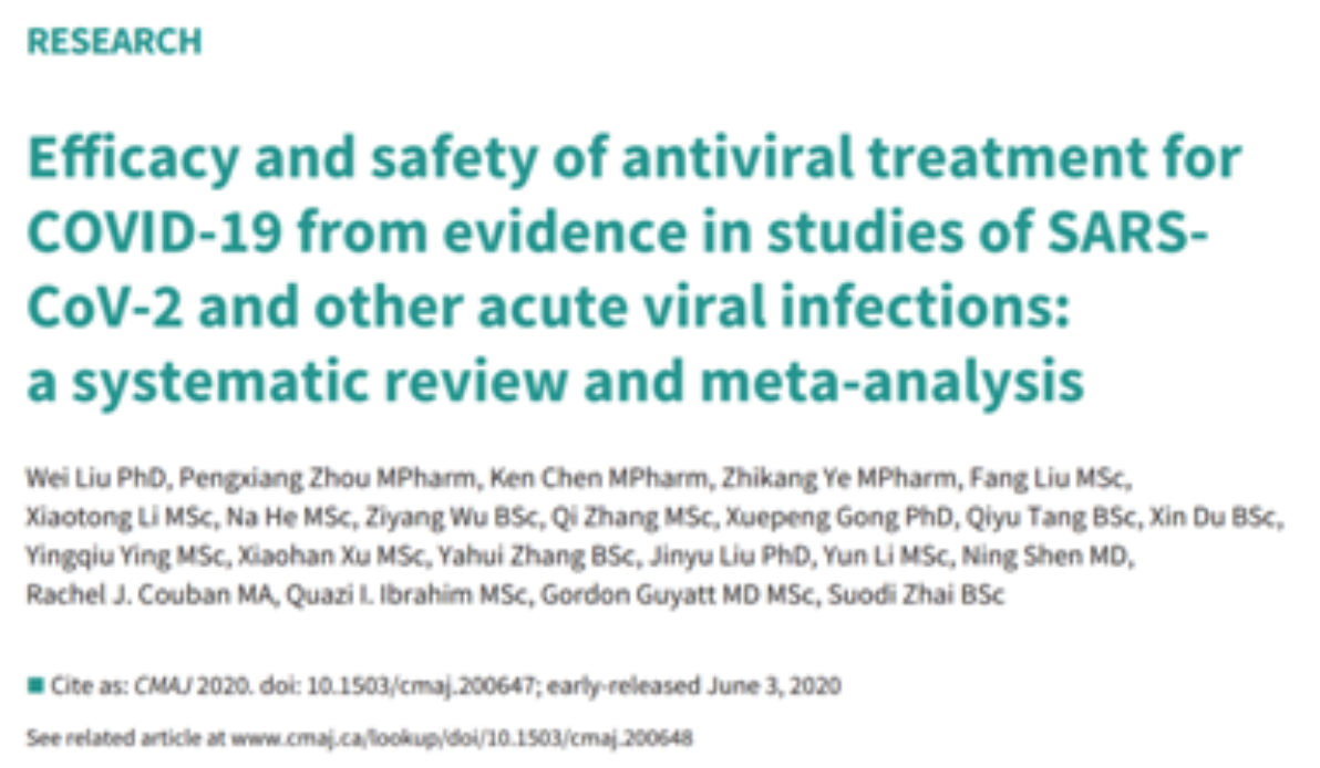 北京大学第三医院药剂科团队主要负责抗病毒药物部分的证据收集、循证评价和利用,20余名团队成员对利巴韦林、氯喹、羟氯喹、阿比多尔、法匹拉韦、干扰素和洛匹那韦/利托那韦(克力芝)用于治疗COVID-19进行了系统评价,翟所迪的学生,正在国外深造的陈恳博士和叶志康博士提供了方法学支持,最终为本次COVID-19全球指南的制定提供证据支持。该系统评价于6月3日发表于Canadian Medical Association Journal,刘维副主任药师、周鹏翔和陈恳为该文的共同第一作者,翟所迪为通讯作者。