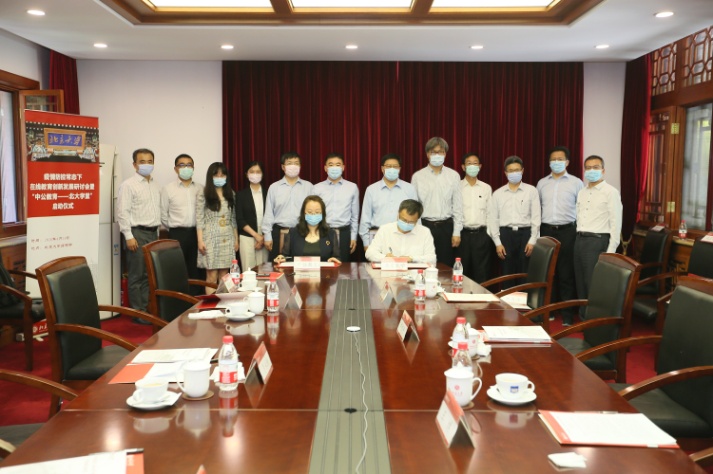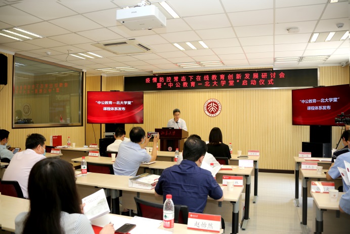 2020年6月18日,疫情防控常态下在线教育创新发展研讨会暨“中公教育—北大学堂”启动仪式在北京大学举行。北京大学党委书记邱水平,副校长王博、张平文,中公教育集团董事长李永新、副总裁吴敏娜,来自兄弟院校、行业企业的继续教育专家和校内相关职能部门、院系代表出席了相关活动。