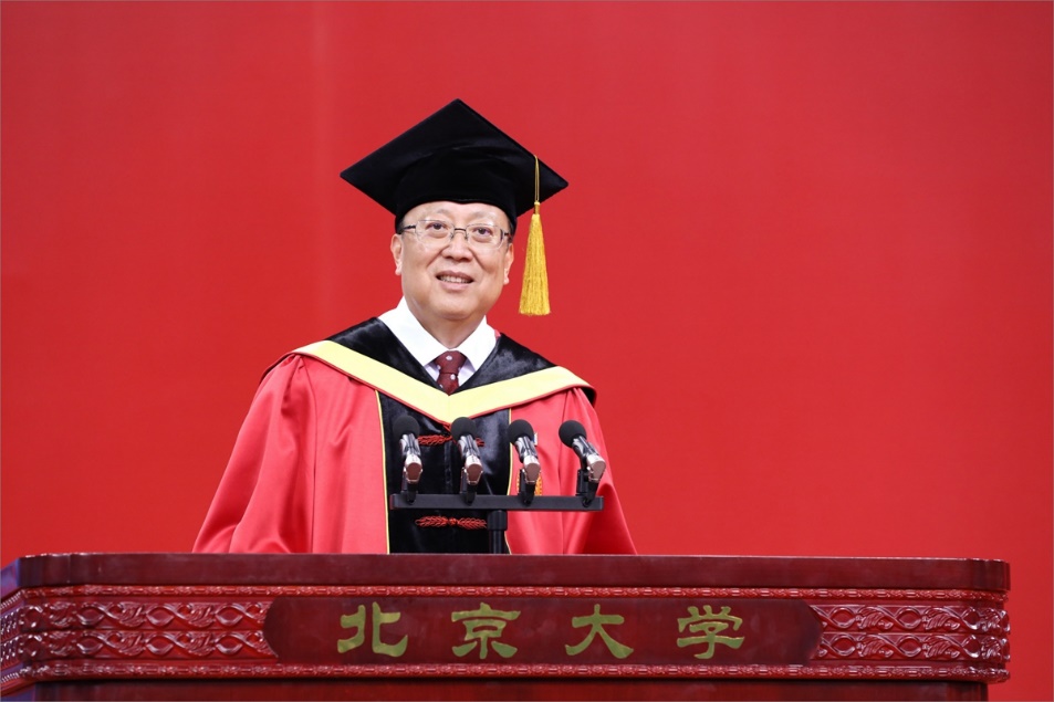 郝平代表学校全体师生员工热烈欢迎同学们回家。他表示,今天是北京大学建校123周年的校庆日,也是五四运动102周年,举行这场学位授予仪式,具有特殊的意义。今天的相聚来之不易、弥足珍贵,正是在以习近平同志为核心的党中央的坚强领导下,我们党团结带领全国人民,取得了抗击新冠肺炎疫情斗争重大胜利的结果。在这场艰苦卓绝的历史大考中,无数北大人和全国众多抗疫英雄一道,不畏艰险、冲锋在前、舍生忘死,展现了伟大的抗疫精神。郝平向在这场战斗中付出辛勤努力和做出巨大牺牲的人们致以最崇高的敬意。