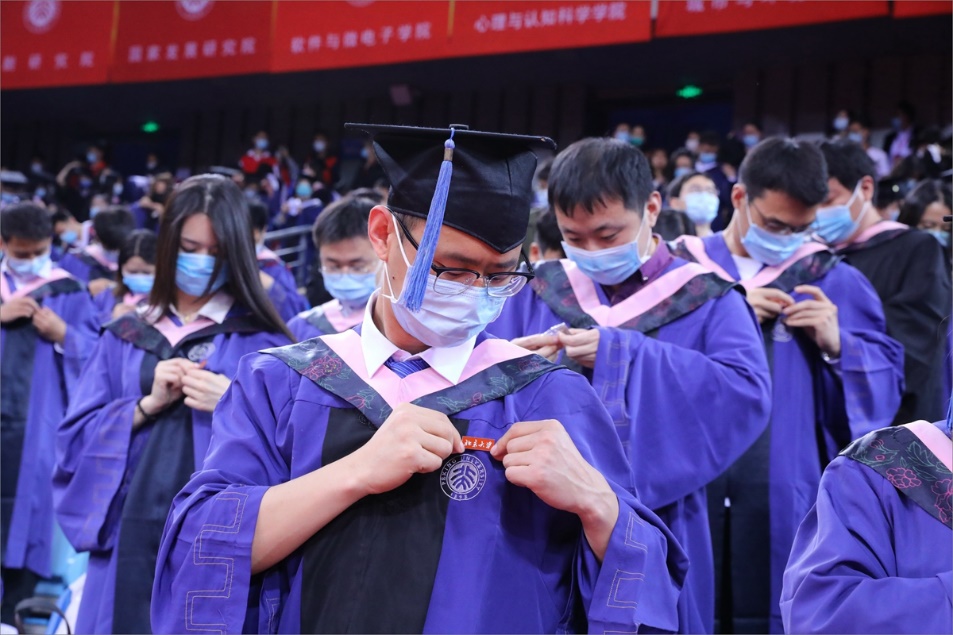 2021年5月4日上午,北京大学在邱德拔体育馆举办2020届毕业生专场学位授予仪式。北京大学党委书记邱水平、校长郝平,北京市委教育工委常务副书记郑吉春,校领导班子成员,校学位评定委员会各分会主席出席。院系职能部门负责人,教职工、中学校长、捐赠方代表等参加仪式。领导嘉宾和北大师生员工齐聚一堂,共同见证特殊时刻,为毕业生送上祝福。仪式由常务副校长龚旗煌主持。
