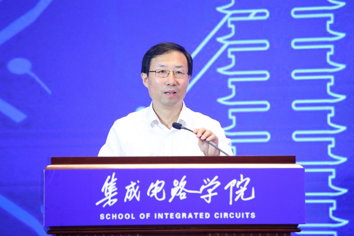 郝平在致辞中指出,北京大学成立集成电路学院,既是深化学科发展、推动“新工科”建设的具体行动,也是响应国家号召、服务国家战略的重大举措。郝平对办好集成电路学院提出三点要求:一是要抓住人才培养关键点,把发展科技第一生产力、培养人才第一资源、增强创新第一动力更好结合起来,充分发挥北大的学科优势,努力把学院建设成为基础研究的主力军和重大科技突破的生力军。二是抓住学科融合生长点。充分利用北大学科门类齐全、基础学科实力雄厚的优势,通过学科交叉,产出更多重大原始创新成果。三是抓住产教融合突破点。充分发挥好“产教融合创新平台”的作用,加强与相关企业在技术、人才等领域的合作,构建新型创新共同体。郝平希望,集成电路学院坚持“四个面向”,着力提升创新能力,勇于攻克“卡脖子”关键核心技术,努力在重大基础科学问题、前沿引领技术上取得更大突破;继续发挥引领示范作用,与各兄弟高校、科研院所、民族企业一起,发愤图强,奋力前行,共同推动我国集成电路产业的发展。