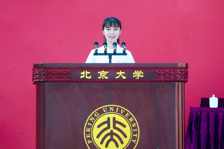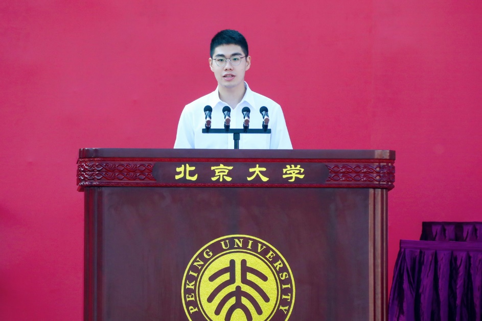 新生代表、药学院2021级博士生孔邦彦分享了自己对“北大人”、对“医学生”肩负的使命和担当的理解。“我们的使命,就是破解医药界‘卡脖子’难题,为中国人民研发普惠性创新药。”他表示,作为未来国民健康的守护人,我们要精术业以济世、兴科技以报国,不辜负国家、社会、学校以及亲人的期望,时刻牢记作为北大人的使命担当,为一个更可爱的中国、更光明的未来,接续奋斗,全力以赴!