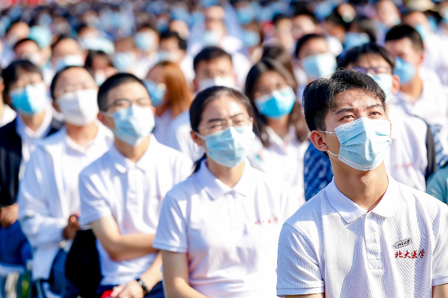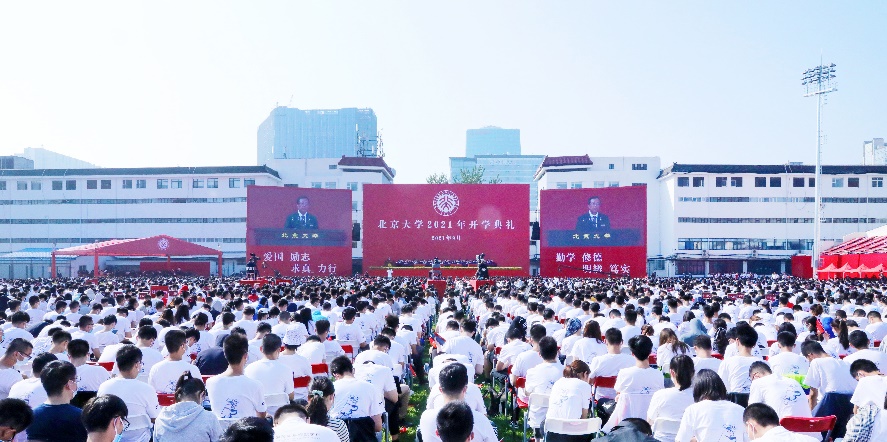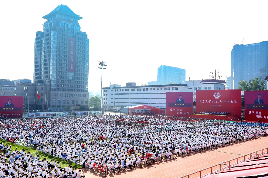 9月10日上午,北京大学2021年开学典礼举行。来自五湖四海的新生汇聚在五四体育场,一张张青春的笑颜明媚了燕园的秋日。