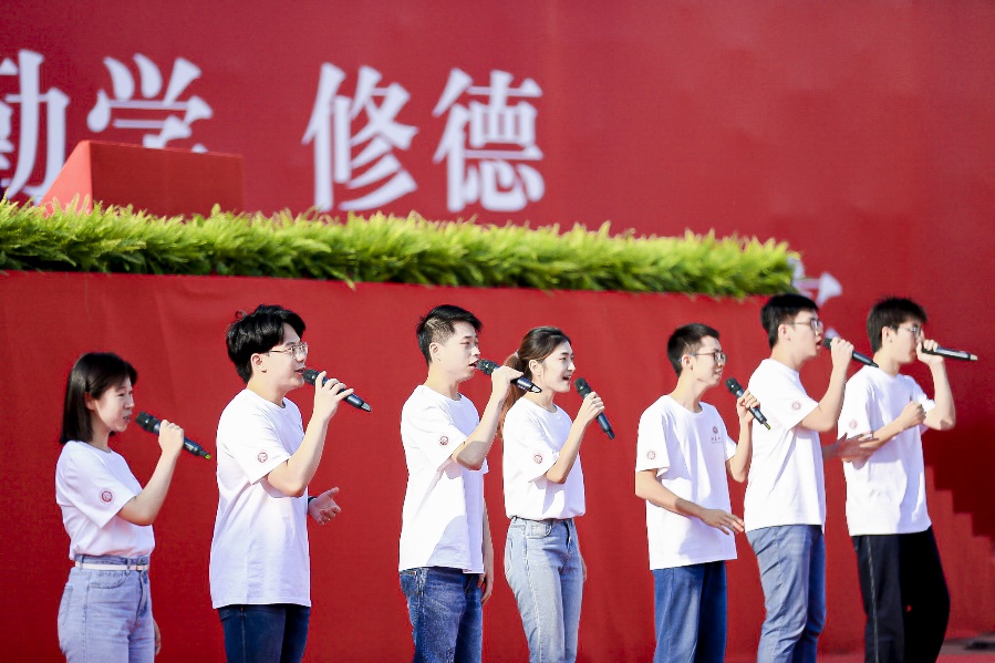 开学典礼当天正值第37个教师节,新生代表向教师代表献花,对老师们的默默耕耘和悉心教导表示感谢。